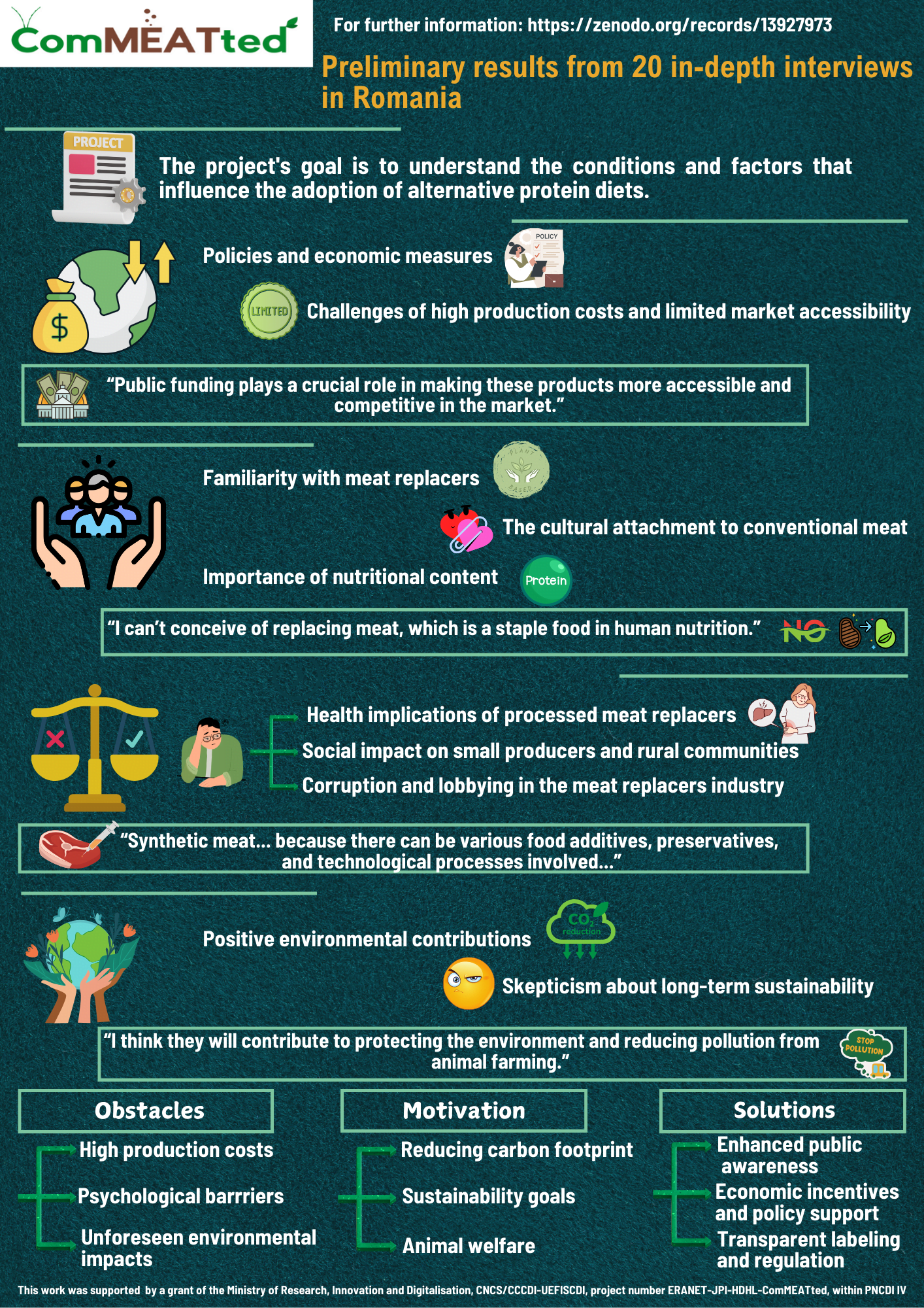 The preliminary findings are drawn from qualitative data collected through interviews conducted in Romania, exploring perceptions, attitudes, and behaviors about meat replacement products. This data collection is part of the larger project, “Committed to the Responsible Development of Meat Replacement Products and Practices: Comparing Multidimensional Barriers and Potentials in European Countries” (ComMEATted), under the JPI HDHL “FOODRETEC” initiative.