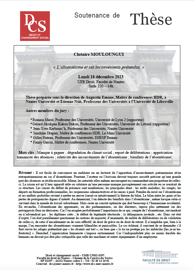 Avis de soutenance - Clotaire MOULOUNGUI - L’absentéisme et ses inconvénients prétendus