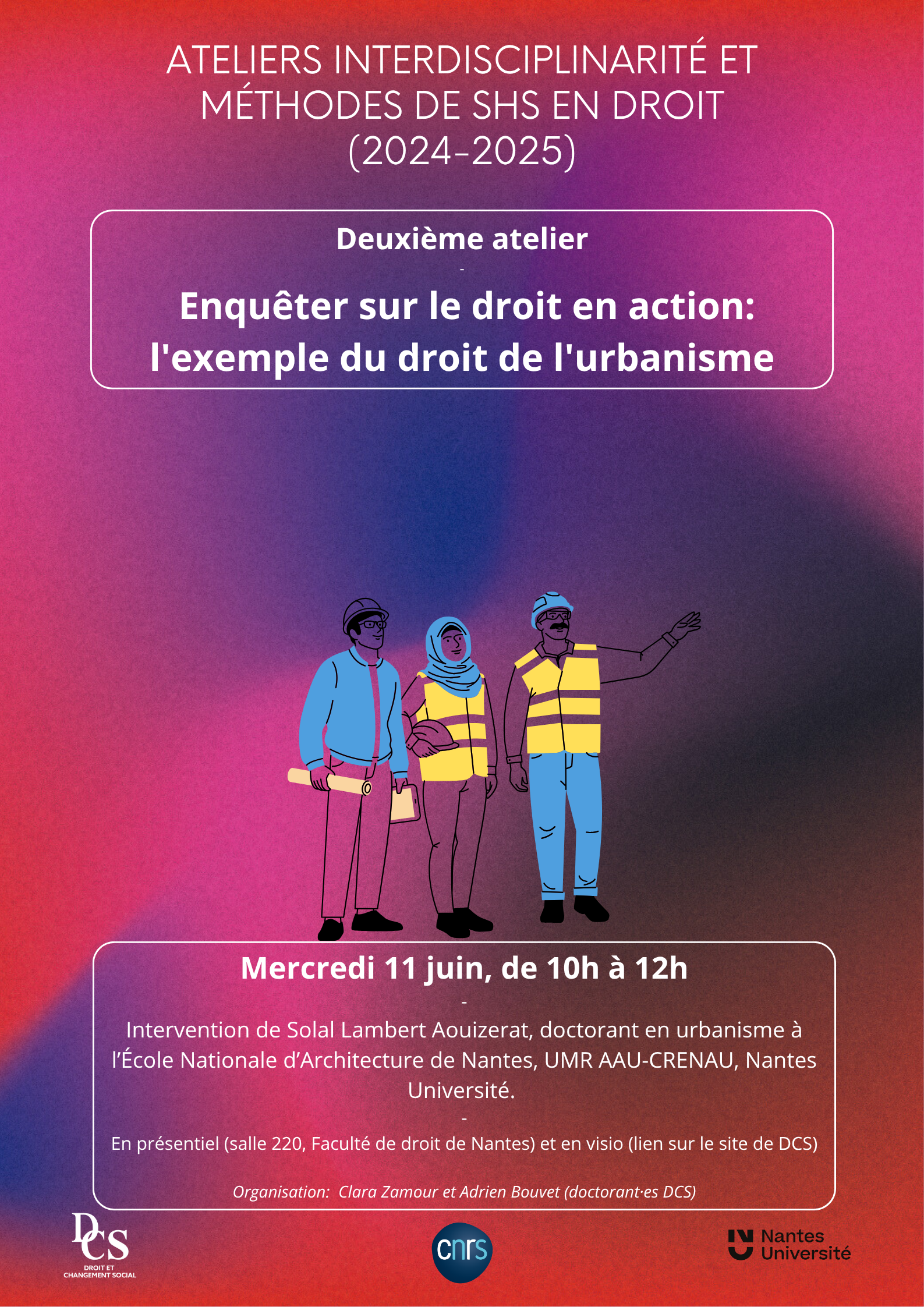 A l’occasion de cette deuxième rencontre, nous vous proposons d’échanger autour de la thématique suivante “ Enquêter sur le droit en action : l’exemple du droit de l’urbanisme ”.