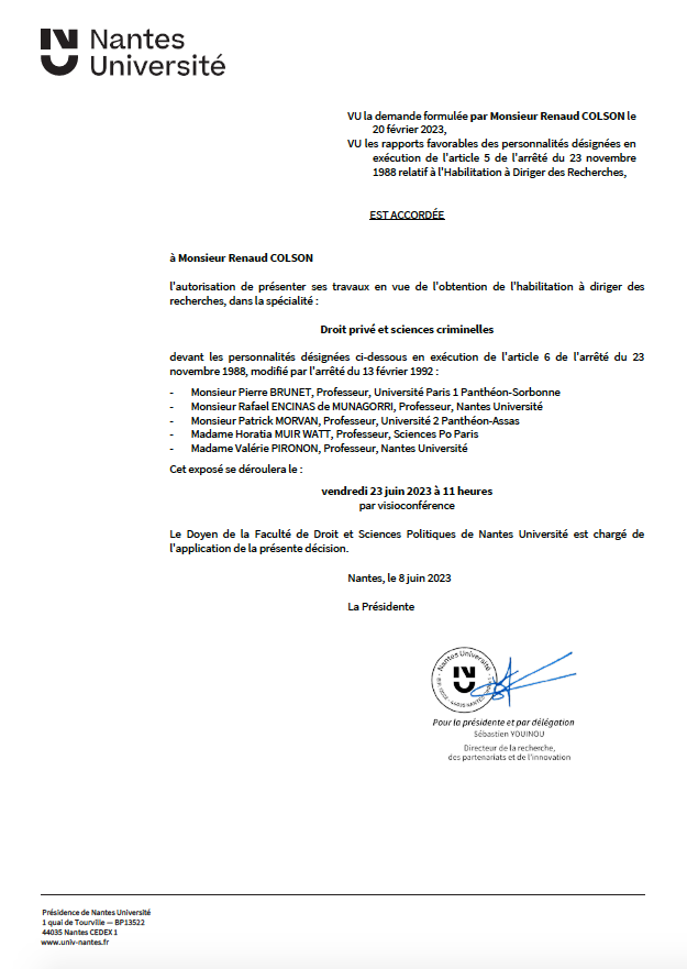 HDR en Droit privé et sciences criminelles