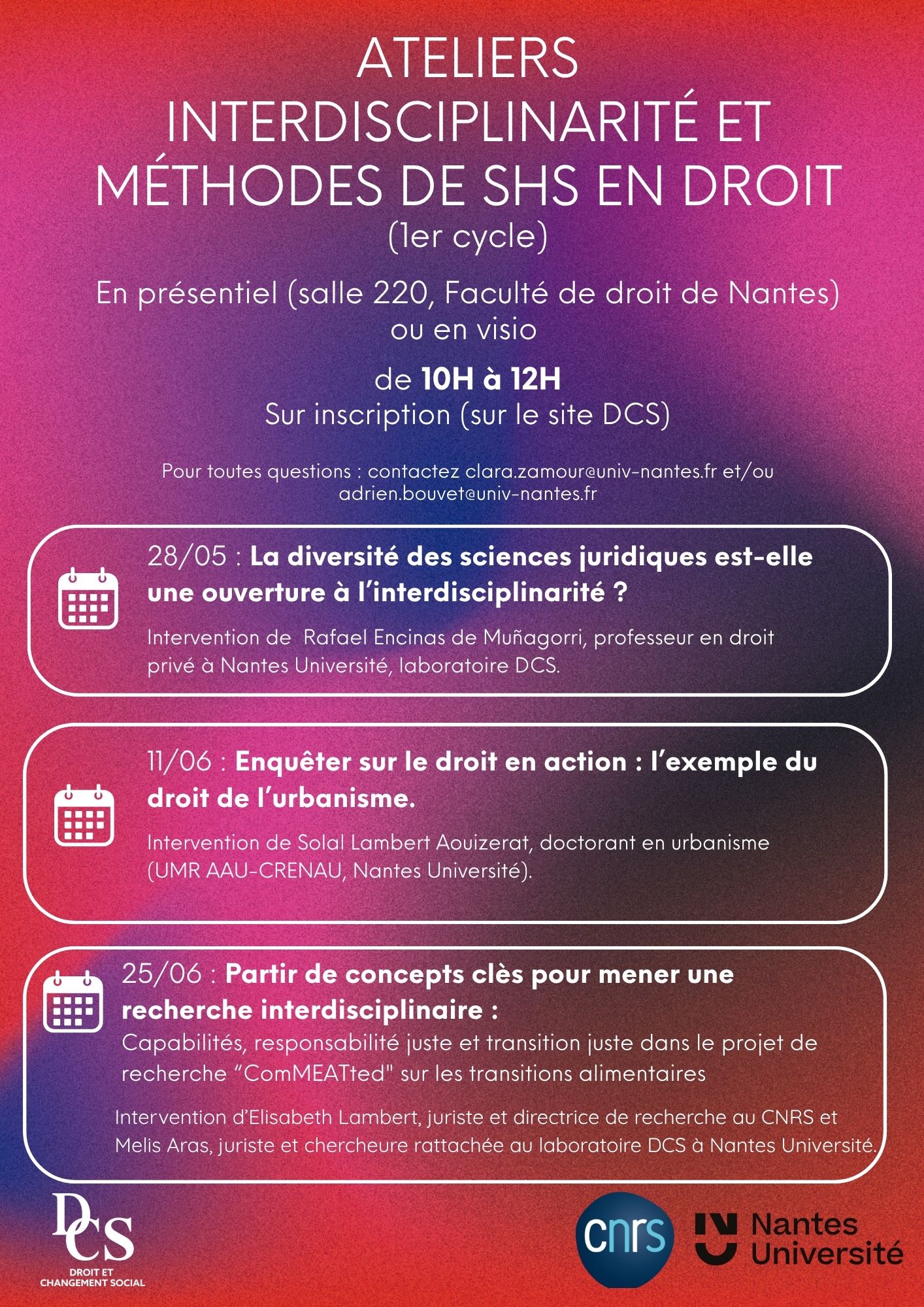 Cycle Interdisciplinarité et Méthodes de SHS en droit 2024-2025